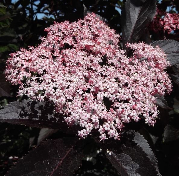 Бузина чёрная Гуинчо Перпл (Guincho Purple) – это уникальный сорт, который привлекает внимание своими декоративными качествами и полезными свойствами. Этот кустарник отличается насыщенной пурпурной листвой, которая придаёт саду элегантный и необычный вид. Весной и летом растение украшено крупными соцветиями бело-розовых цветов, которые привлекают пчёл и других опылителей. Осенью на кустарнике появляются чёрные ягоды, которые можно использовать для приготовления варенья, сиропов и настоек.