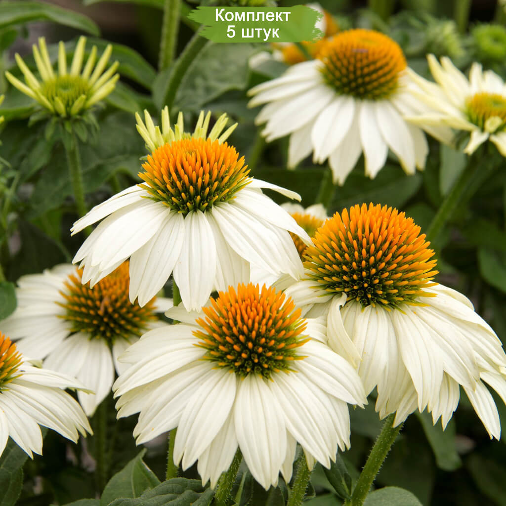 Эхинацея "Белый лебедь" прекрасно подходит для создания цветочных композиций, миксбордеров и клумб. Она также является отличным медоносом, привлекая в сад пчел и бабочек. Саженцы поставляются в количестве 5 штук, что позволяет легко создать гармоничную группу растений на вашем участке.