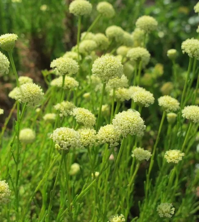 Сантолина Неаполитанская отличается компактным ростом, достигая высоты до 1м, что делает ее идеальной для создания бордюров, альпийских горок и декоративных композиций. Растение предпочитает солнечные места и хорошо дренированные почвы, устойчиво к засухе и не требует частого полива.